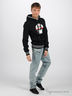 Теплая трикотажная толстовка с приятной на ощупь подкладкой. Капюшон с кулиской и бархатной оторочкой по краю. Манжеты и низ изделия посажены на трикотажную резинку. Карман кенгуру. На полочке яркий принт.