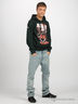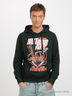 Мужская трикотажная толстовка. Капюшон с кулиской по краю. Манжеты и низ изделия посажены на трикотажную резинку. Два прорезных кармана. На полочке яркий принт.