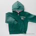 Толстовка для мальчика, зеленого цвета. Выполнена из плотного трикотажа, с теплым начесом на изнанке. На застежке-молнии с капюшоном и накладным карманом "кенгуру". С широкими мягкими резинками по низу и на рукавах, что предотвращает проникновение холодного воздуха.