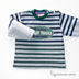 Толстовка для мальчика, серого цвета в синюю полоску. Выполнена из плотного трикотажа, с небольшим начесом на изнанке. Воротник выполнен из эластичного трикотажа - резинки. Застегивается на кнопки в плечевом шве.