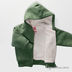 Очень теплая толстовка для мальчика, зеленого цвета. Выполнена из плотного трикотажа, с подкладом из ворсистого флиса. На застежке-молнии с капюшоном и двумя прорезными карманами. С широкими мягкими резинками по низу и на рукавах, что предотвращает проникновение холодного воздуха.