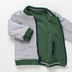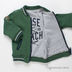 Зеленая сторона. Два передних кармана. Полочка украшена нашивкой, декоративная аппликация на спинке, нашивка на рукаве