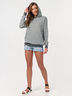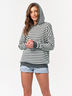 Особенности: Удлиненный джемпер прямого силуэта с капюшоном выполнен фактурной вязкой, из полушерстяной пряжи в контрастную мелкую полоску.