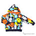 Толстовка прямого силуэта с капюшоном застегивается на молнию. Манжеты и низ изделия - трикотажные резинки. Два передних кармашка. Изделие украшено принтами.