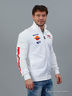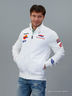 Толстовка с застежкой на молнию, боковыми втачными карманами и контрастным рисунком.