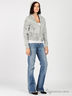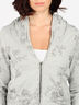 Детали: в "кармашек" в вороте прячется капюшон, застежка на молнию, длинный рукав, манжеты и низ изделия - трикотажные резинки, два передних кармана, декоративные принты