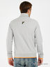 Детали: высокий ворот-стойка, застежка на молнию на полочке, два передних кармана, аппликации; ворот, манжеты и низ изделия - трикотажные резинки