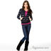 Прекрасный женский джемпер из плотного хлопкового трикотажа с отделкой тесьмой и пайетками. Фронтальная застежка на молнию. Высокий воротник-стойка с отворотом. Спереди карман-кенгуру. Планка застежки и проемы карманов декорированы атласным кантом.