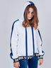Толстовка с капюшоном. Модель с длинным рукавом дополнена контрастными вставками.