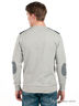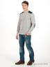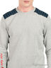 Детали: круглый вырез горловины обработан притачной трикотажной бейкой, на плечах вставки из отделочной ткани, длинный рукав, манжеты и пояс выполнены трикотажной резинкой, на рукавах нашивки в виде заплаток из отделочной ткани, на правом рукаве вышитая надпись - My lucky shirt.