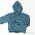Материал: верх - трикотаж, ворсистый подклад под мех Детали: капюшон, два передних кармана, манжеты и низ изделия - трикотажные резинки, принты