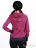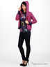 Детали: в капюшон вставлен регулирующий шнурок, длинный рукав, застежка на молнию, два передних кармана, рукава и низ изделия посажены на манжеты, полочка украшена аппликациями