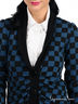 Детали: отложной ворот, длинный рукав, застежка на пуговицы, декоративная сборка по плечевому шву и по планке-застежке, манжеты и низ изделия - трикотажные резинки