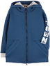 Толстовка удлиненная с длинным рукавом, капюшон на подкладке, по переду молния и два прорезных кармана. По спинке и рукаву принт. Изготовлена из футера с начесом.
