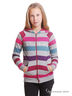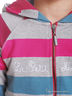 Толстовка из мягкого мольтона в разноцветную полоску. Застежка на молнию. Удобный капюшон и карманы. Принт логотипа спереди.
