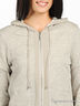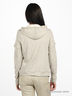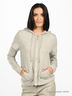 Легкая толстовка из очень нежного. Приятного на ощупь материала цвета серый меланж. Капюшон с белой перфорированной подкладкой и шифоновой вставкой. Двойные рукава. Застегивается на молнию. Два прорезных кармана. Декорирована серебристой прострочкой. Что придает модели особое очарование и шик.