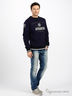 Теплая и уютная толстовка из плотного трикотажная с флисовой подкладкой. Круглая горловина в рубчик. Длинные рукава. Манжеты и низ изделия посажены на широкие трикотажные резинки в рубчик. Полочка декорирована принтом и нашивками.