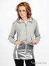 Стильная гламурная толстовка из плотного трикотажа. Капюшон с кулиской по краю. Застегивается на молнию. Длинные рукава с манжетами. Два кармана. особый шик этой модели придают пайетки на талии. Искристая атласная подкладка.