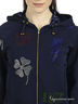 Детали: капюшон с атласным подкладом, в край капюшона вставлена регулирующая резинка, длинный рукав, два передних кармана, застежка на молнию, манжеты и низ изделия - трикотажные резинки, изделие украшено стразами