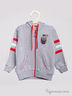Толстовка в спортивном стиле для мальчика. Выполнена из ткани Brushed Terry. Декоративные контрастные полоски на рукавах; карманы спереди украшены оверлоком с контрастной нитью; на полочке шеврон с изображением монстра. Замечательный вариант для активного отдыха. Капюшон, ткань – Brushed*Terry, рукава и низ изделия отделаны трикотажной резинкой, застежка: молния, два накладных функциональных кармана спереди.