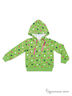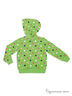Яркая трикотажная толстовка с капюшоном. Капюшон регулируется шнурком контрастного цвета. Застежка - молния; фигурный пулер. Два функциональных кармана. Шов горловины обработан тесьмой. Манжеты, края карманов и низ изделия - трикотажная резинка.
