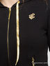 Трикотажная толстовка с капюшоном. Спина украшена вышивкой в виде логотипа бренда. По рукавам золотые лампасы.