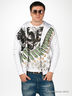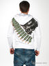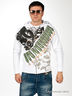 Толстовка из плотного трикотажа на молнии с оригинальным принтом, с капюшоном. Подкладка капюшона выполнена из шелковистой ткани. Края рукавов и низ толстовки отделаны широкой, трикотажной резинкой.