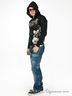Толстовка из плотного трикотажа на молнии с оригинальным принтом, с капюшоном. Подкладка капюшона выполнена из шелковистой ткани. Края рукавов и низ толстовки отделаны широкой, трикотажной резинкой.