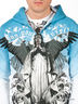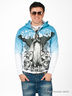 Толстовка из плотного трикотажа на молнии с оригинальным принтом, с капюшоном. Подкладка капюшона выполнена из шелковистой ткани. Края рукавов и низ толстовки отделаны широкой, трикотажной резинкой.