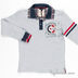 Стильная толстовка для мальчика из тонкой триктажной ткани. С длинным рукавом. Двойной отложной воротник, застежка на пуговицы, полочка декорирована набивным рисунком с нашивкой.