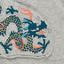 Ворот - яркая трикотажаная резинка. По длине рукавов, к низу изделия и с внутренней стороны манжет пристрочены декоративные полоски ткани. На полочке крупная нашивка с драконом. Декоративная вставка с отстрочкой на спине.
