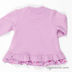 Детали: округлый вырез горловины, застежка на три кнопки на левом плечике, длинный рукав посажен на трикотажную манжету, оборки; полочка декорирована вышивкой и пришитыми декоративными элементами