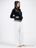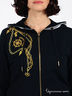 Толстовка из высококачественного, очень мягкого трикотажа с капюшоном. Капюшон на шнурке. Классический крой. Длинный рукав. Застежка - металлическая молния золотого цвета. Два кармана - кенгуру. Низ и манжеты изделия, а также капюшон оформлены трикотажной резинкой в белую полоску. Полочка изделия декорирована вышивкой с логотипом бренда.