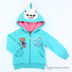 Толстовка прямого силуэта с капюшоном и длинным рукавом застегивается на молнию. Манжеты и низ изделия - трикотажные резинки. Два передних кармана. Полочка украшена аппликациями, капюшон декорирован "ушками".