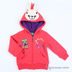 Толстовка прямого силуэта с капюшоном и длинным рукавом застегивается на молнию. Манжеты и низ изделия - трикотажные резинки. Два передних кармана. Полочка украшена аппликациями, капюшон декорирован "ушками".