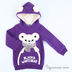 Толстовка прямого силуэта с капюшоном и длинным рукавом. Манжеты и низ изделия - трикотажные резинки. Полочка украшена нашивками и аппликациями, капюшон декорирован "ушками".