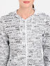 Детали: капюшон с регулирующим шнурком, застежка на молнию на полочке, длинный рукав посажен на манжету, манжеты и низ изделия - трикотажные резинки, два передних кармана, принты