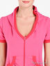 Детали: капюшон, застежка на молнию на полочке, короткий рукав посажен на манжету, манжеты и низ изделия - контрастные трикотажные резинки, два передних кармана с контрастной окантовкой