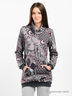 Модная толстовка из плотной, мягкой ткани со стильным принтом. Модель полуприталенного силуэта. Широкий ворот-стойка на кулиске. Длинные прямые рукава с манжетами. Карман кенгуру. Манжеты, входы в карман, низ изделия выполнены из рибаны.