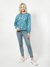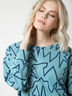 Трикотажная толстовка с крупным ярким принтом прямого силуэта.Круглый вырез горловины. Низ обработан притачным поясом. Спущенная линия плеча. Рубашечный рукав на манжете.