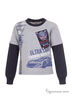 Кофта с длинными рукавами и округлым вырезом горловины. Модель выполнена в яркой, контрастной расцветке и декорирована принтом спереди. Отличный вариант на каждый день. Изделие выполнено с эффектом 2в1.