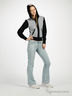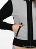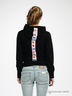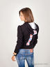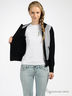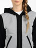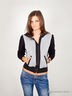 Женская толстовка с капюшоном. Застегивается на молнию. Подкладка капюшона и полочки декорированы сетчатой тканью. Два прорезных кармана на молнии. Манжеты на широкой трикотажной резинке.