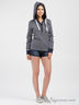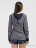 Замечательный свитшот с капюшоном и длинными рукавами. Спереди удобная застежка на пуговицы. Изделие украшено модным рисунком в полоску.
