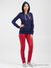 Отличная толстовка с капюшоном и длинными рукавами. Капюшон дополнен завязками. Модель дополнена застежкой на молнию. Спереди - накладные карманы. Изделие декорировано вышивкой.