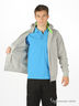 Толстовка из плотного трикотажа с капюшоном. Длинные рукава реглан. Застегивается спереди на молнию. Два кармана. На манжетах прорезь для большого пальца. Манжеты и низ изделия посажены на трикотажную резинку. На рукаве декоративная нашивка.