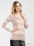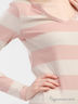 Лонгслив - стильная и практичная вещь на каждый день. Модель с длинными рукавами и V-образным вырезом горловины. Спереди - небольшая застежка на пуговицы. Украшено изделие рисунком в полоску.