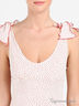 Детали: тонкие оригинальные лямки, круглый вырез горловины, по спинке V-вырез, на лямках стильные завязки, отрезной лиф, по низу изделие выполнено рюшей оригинальная расцветка.