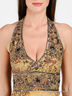 Детали: застежка на молнию и на крючок на боку, отрезной лиф с бретелью-петлей, изделие активно декорировано пайетками, бисером, стеклярусом и различными металлическими декоративными элементами