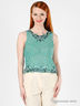 Детали: круглый вырез, без рукавов, сзади застегивается на молнию и крючок, изделие украшено бисером, вышивкой и пайетками