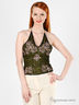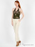 Детали: бретель-петля на веревочках, лиф дополнен плотными чашками, сзади затягивается на шнуровку, украшен вышивкой, бисером и пайетками